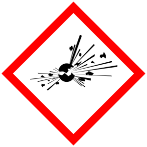 Eksplosiv | GHS01 er symbolet for eksplosive stoffer. Det viser en eksploderende bombe og bruges til at advare om, at stoffet kan eksplodere ved kontakt med varme, stød, gnister eller flammer. |