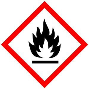 Brandfarlig | GHS02 symbolet viser en flamme og advarer om, at produktet er yderst brandfarligt. Dette kan omfatte brandfarlige gasser, aerosoler, væsker og faste stoffer |