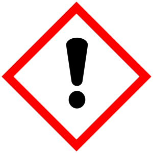Sundhedsfare | GHS07 symbolet viser et udråbstegn og advarer om, at produktet kan være skadelig eller irriterende. Dette kan omfatte sundhedsskadelige virkninger som hudirritation, øjenirritation, allergiske hudreaktioner, åndedrætsirritation eller specifik målorgantoksicitet ved enkelt eksponering. |