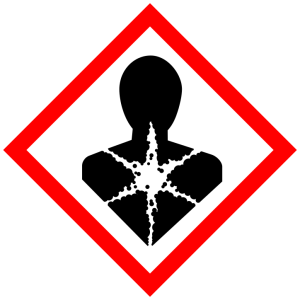 GHS08 symbolet viser en person med et hvidt stjerneformet symbol på brystet og advarer om, at produktet kan forårsage alvorlige sundhedsskad. Dette kan inkludere: